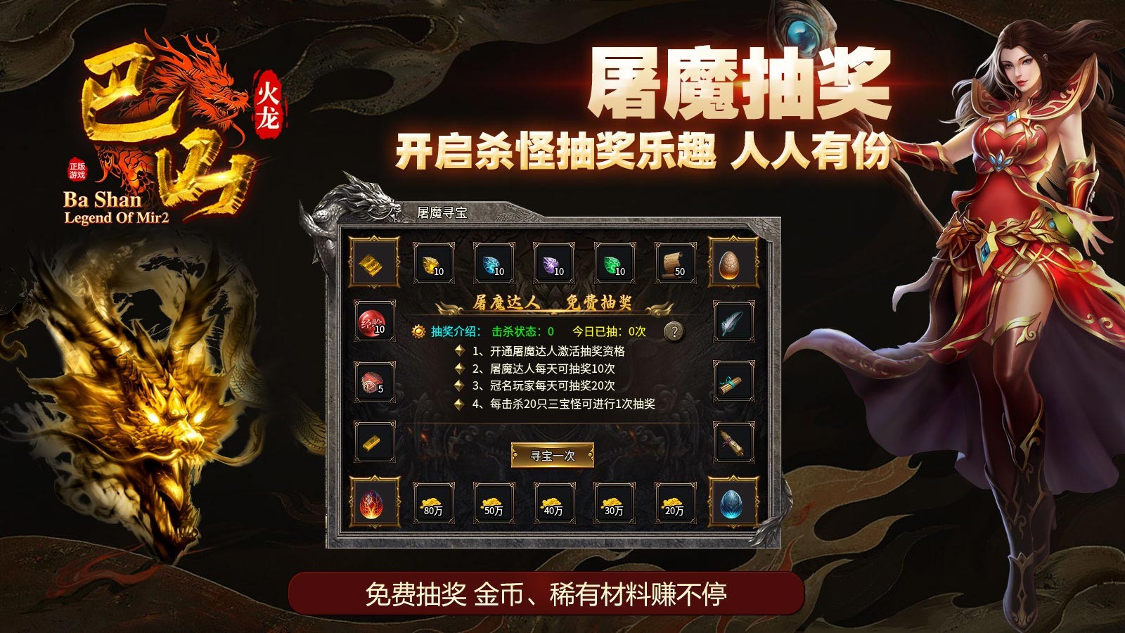 2.屠龙抽奖开启杀怪抽奖乐趣,免费抽奖,金币稀有材料啊赚不停