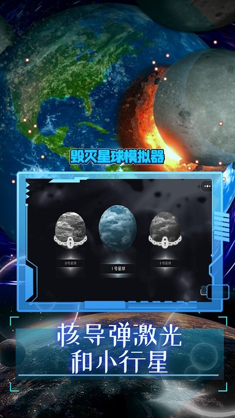 你是否想象过世界末日呢?异形入侵,外星科技降维打击,行星撞击,这些在电影或是小说中都有过让人印象深刻的演绎,而今天带来的这款游戏正是以玩家的双手来控制武器,行星等毁灭一个星球,更直观的去感受星球爆炸毁灭的那种场景视觉体验。
