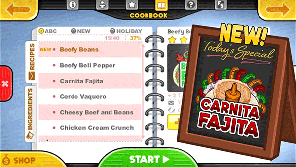这是一款卡通风格的美食烹饪模拟游戏,策略经营玩法,感兴趣的玩家可以下载尝试一下,在游戏中玩家需要经营一家爸爸的墨西哥卷饼店,你需要根据顾客的要求,为他们制作各种口味的卷饼,首先准备好自己可能需要的食材,制定菜谱并让顾客在规定的时间内订购,在规定的时间内完成食物的准备并赚取收入,游戏玩法简单易玩,任何玩家都可以轻松上手并玩。