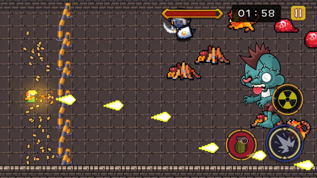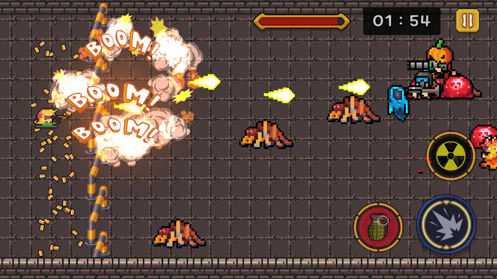 在这款生存像素枪战游戏中,你可以选择你最喜欢的武器来参与与众多怪物的各种战斗,快速升级击败boss以获得更多武器资源,享受有趣的移动射击挑战,避免敌人的攻击并尽快赢得游戏。