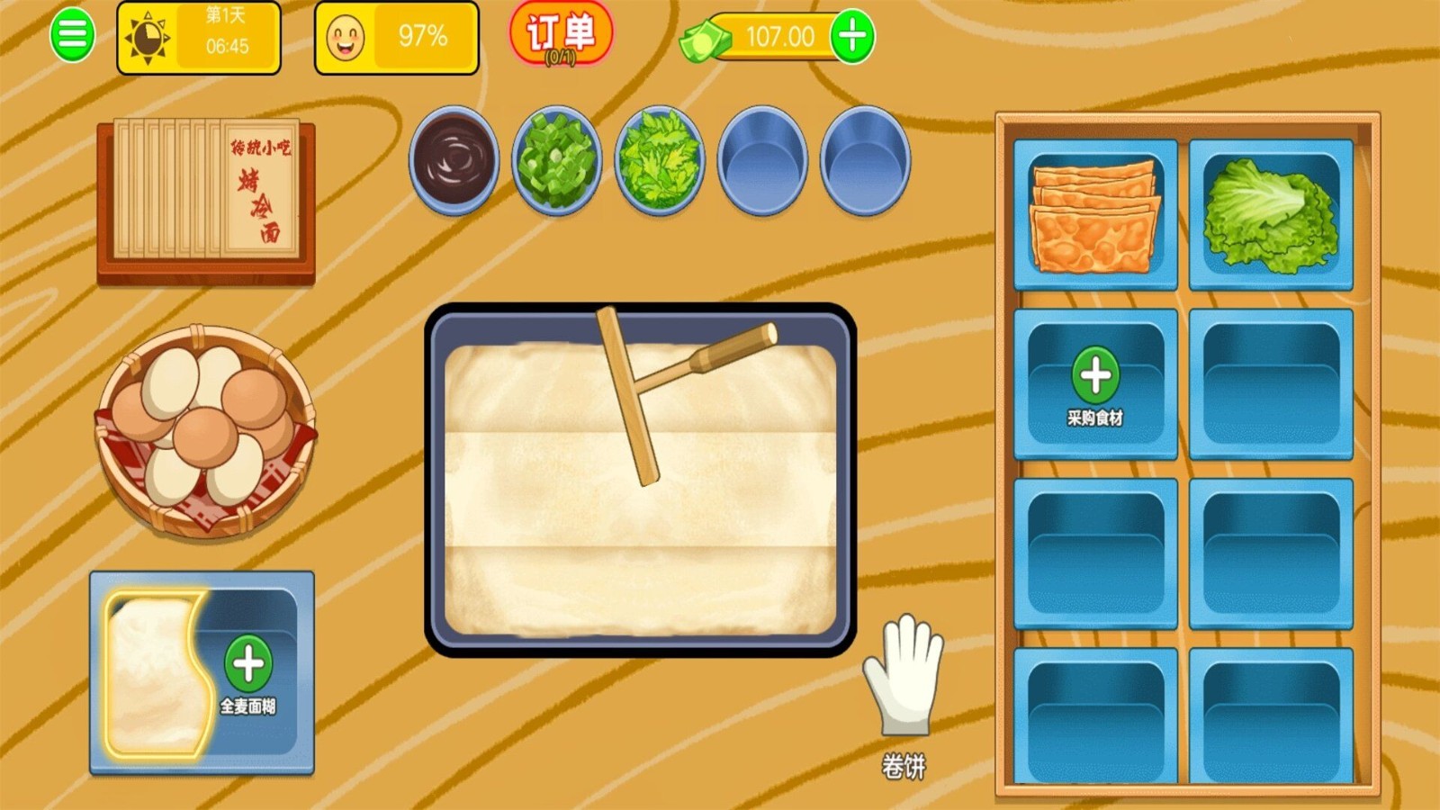 1.玩家扮演烤冷面摊主,体验制作烤冷面的过程,从小店到规模进一步扩大