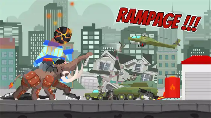 猛犸象摧毁都市游戏是一款横版破坏题材手机解压游戏,在猛犸象摧毁都市游戏内化身成为强大猛犸象,猛犸角色设定,玩家可以体验到有别于传统角色的破坏乐趣,丰富多样的城市场景。 玩家可以在不同的环境中随心所欲地破坏,体验不同的挑战,操作简单易上手,适合各类玩家体验并轻松享受破坏的快感。