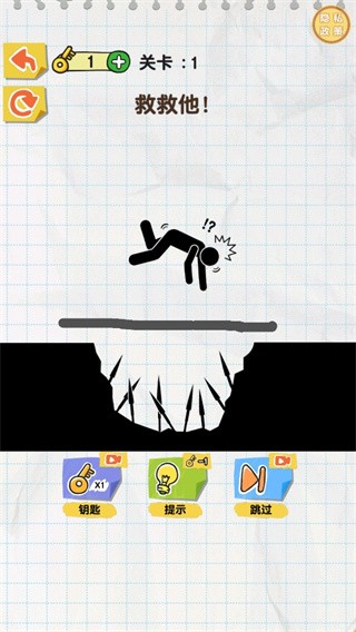3、游戏玩法非常简单,只需要在屏幕上轻轻滑动,画出一条线来保护火柴人,避免关卡里的种种危险。