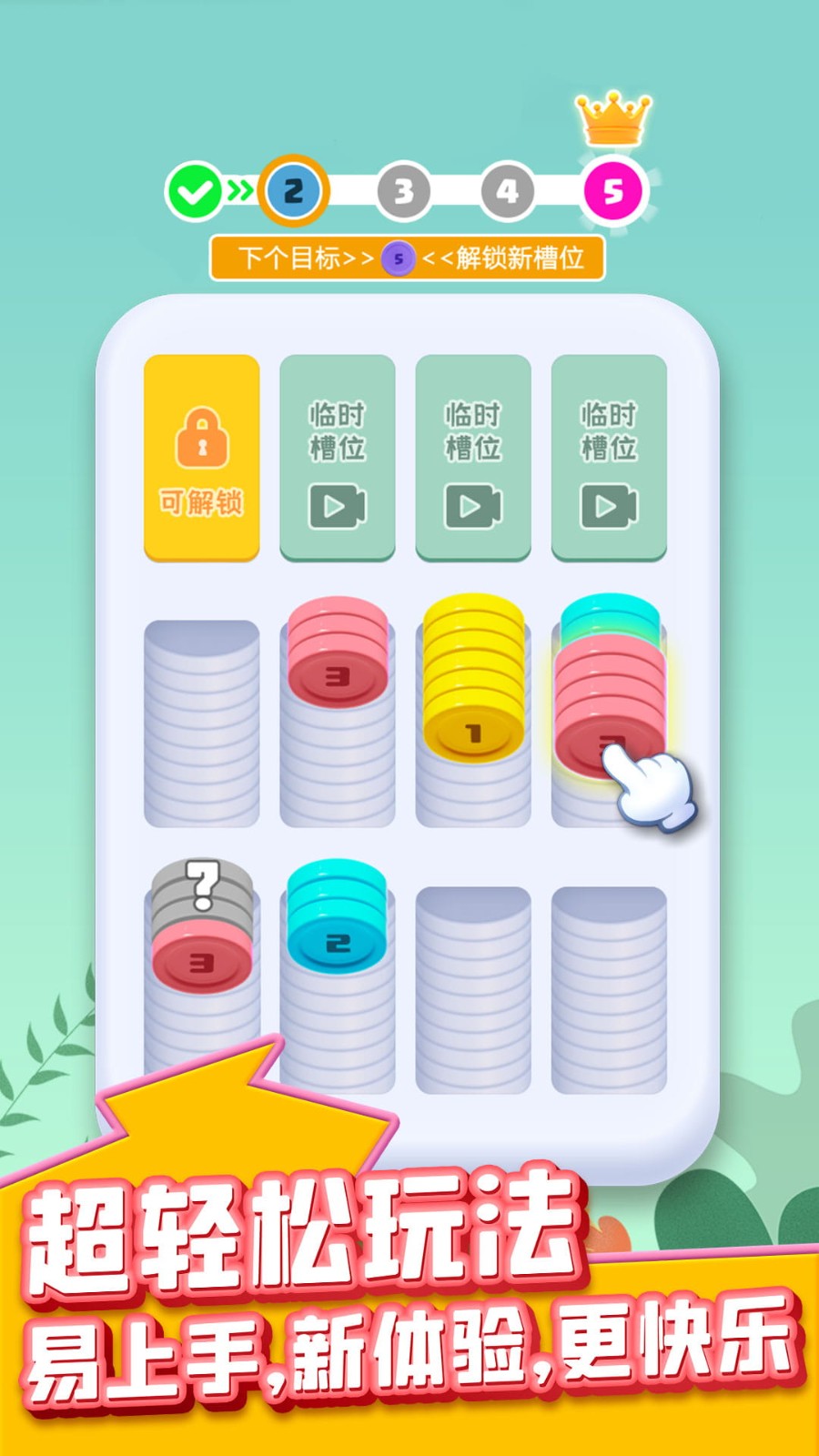1.点击硬币进行排列消除,完成关卡目标即可完成任务,不断进行挑战,解锁更多空槽,挑战你的思维极限。