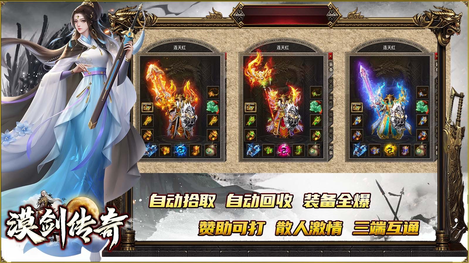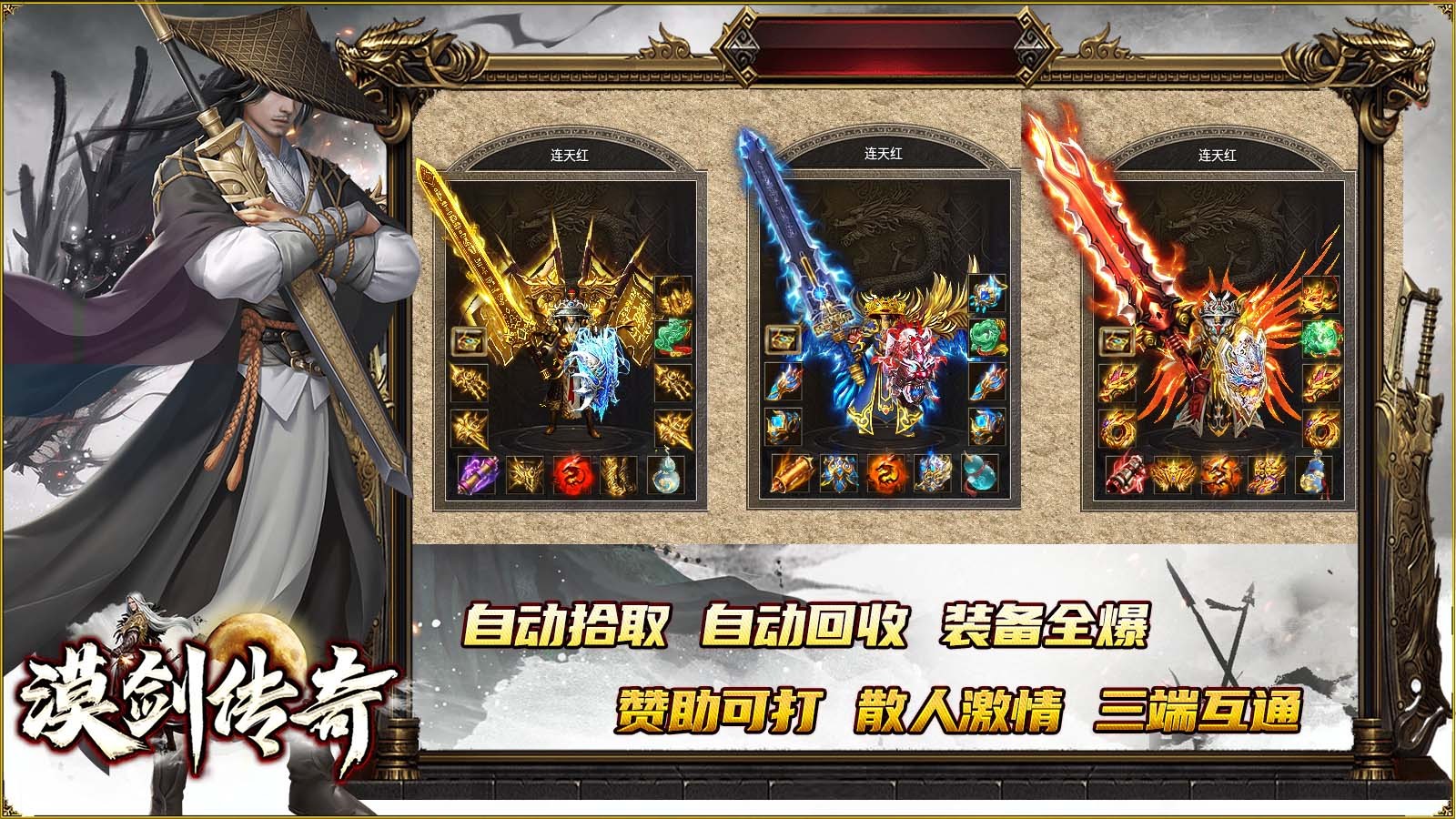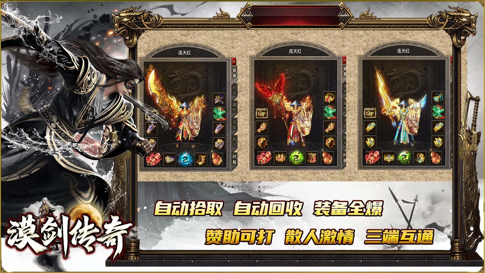 漠剑传奇是一款1.80复古三职业传奇手游,在漠剑传奇中,上线免费自动挂机自动拾取,解放双手。赞助可充可打,小怪爆终极,打怪加切割,特色原创,散人天堂。