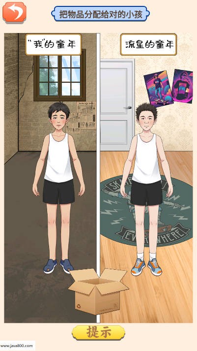 拖动旧衣服到左侧男孩,