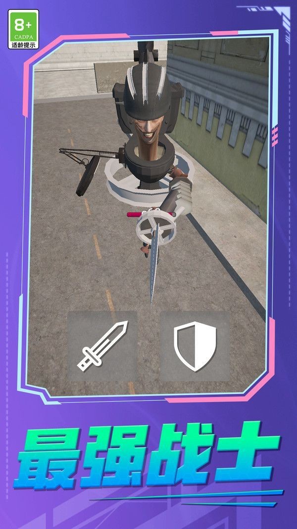 战士大战模拟游戏是一款马桶人主题手机动作冒险游戏,在战士大战模拟游戏内玩家将化身马桶人展开一系列的冒险,全新有趣的动作冒险玩法,充满挑战性的沙盒竞技元素,完成不同地图的任务挑战,刺激互动,完成竞技冒险,探索复杂模式,出色完成挑战,体验丰富多彩的过程。