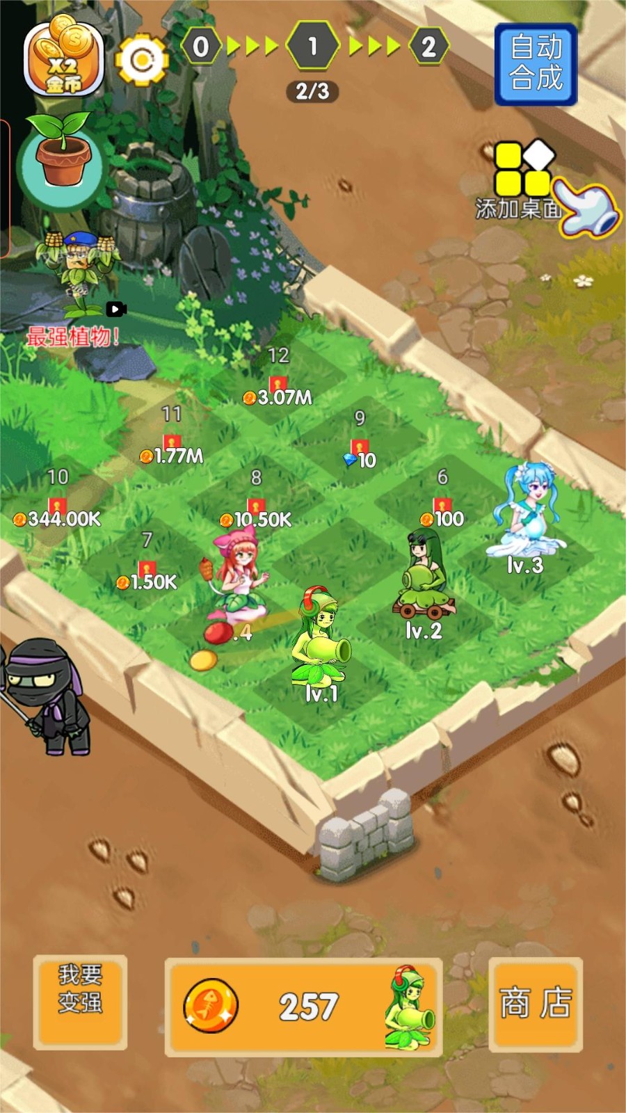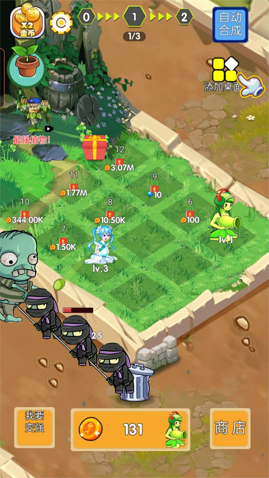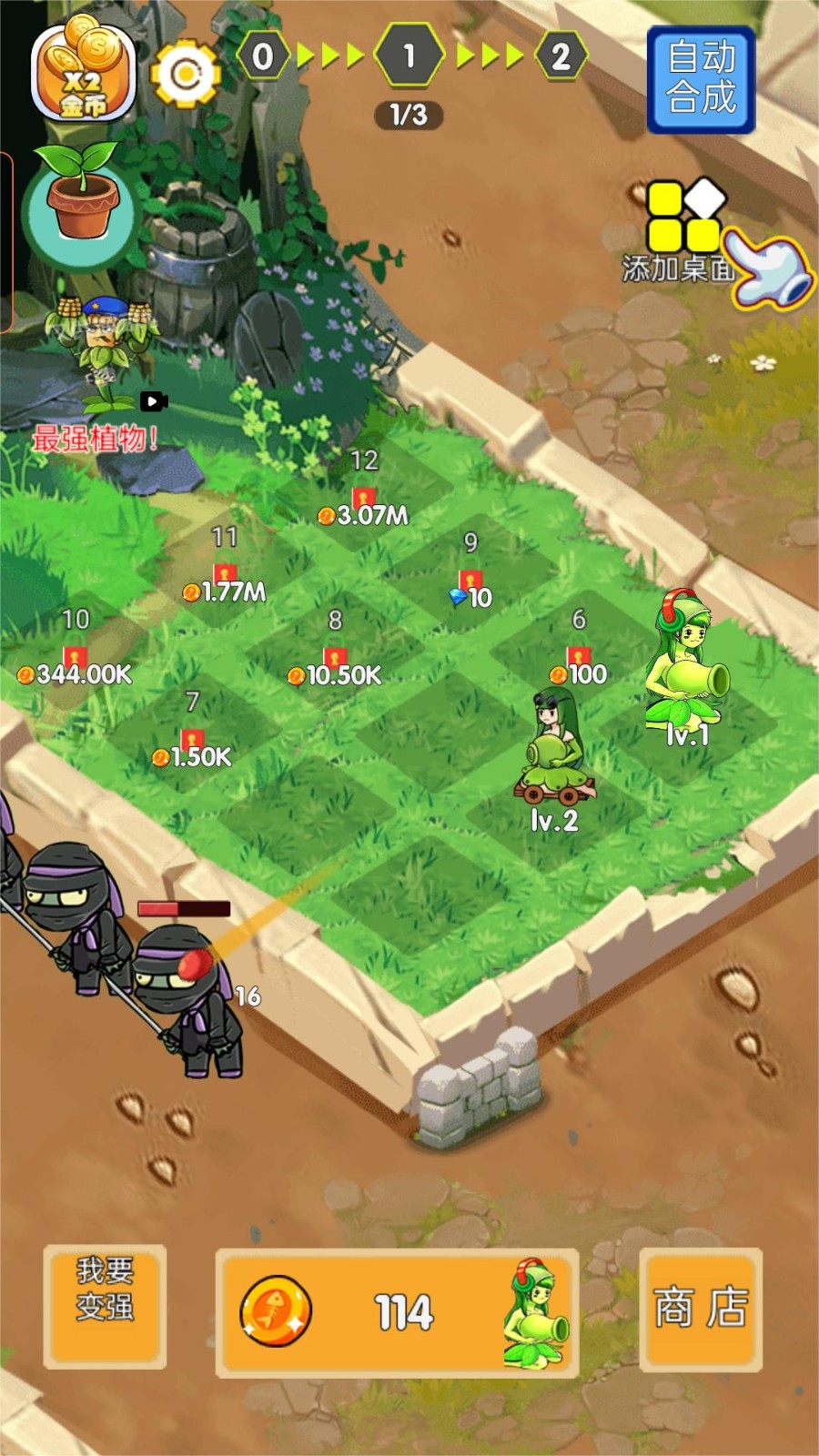 1.通过升级植物,提高它们的攻击力和生存能力,甚至进化成更强大的形态。