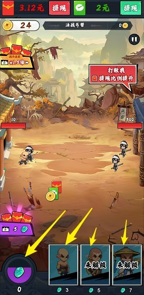 1.在战斗开始前设置好英雄编队,放置英雄进行战斗,击败敌人完成关卡挑战,获得红包奖励。