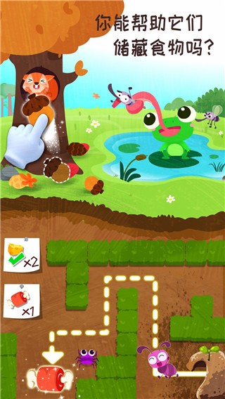 1、青蛙、小白兔、小老虎都是你的朋友,和他们一起迎接疯狂动物园的挑战,冬眠之旅即将开始。
