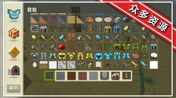 1、玩家可以利用各种像素块来搭建并体验全新的沙盒之旅;