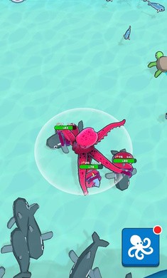 2.随着章鱼的成长,可以解锁新的能力和形态,进化成更高级的海洋生物。