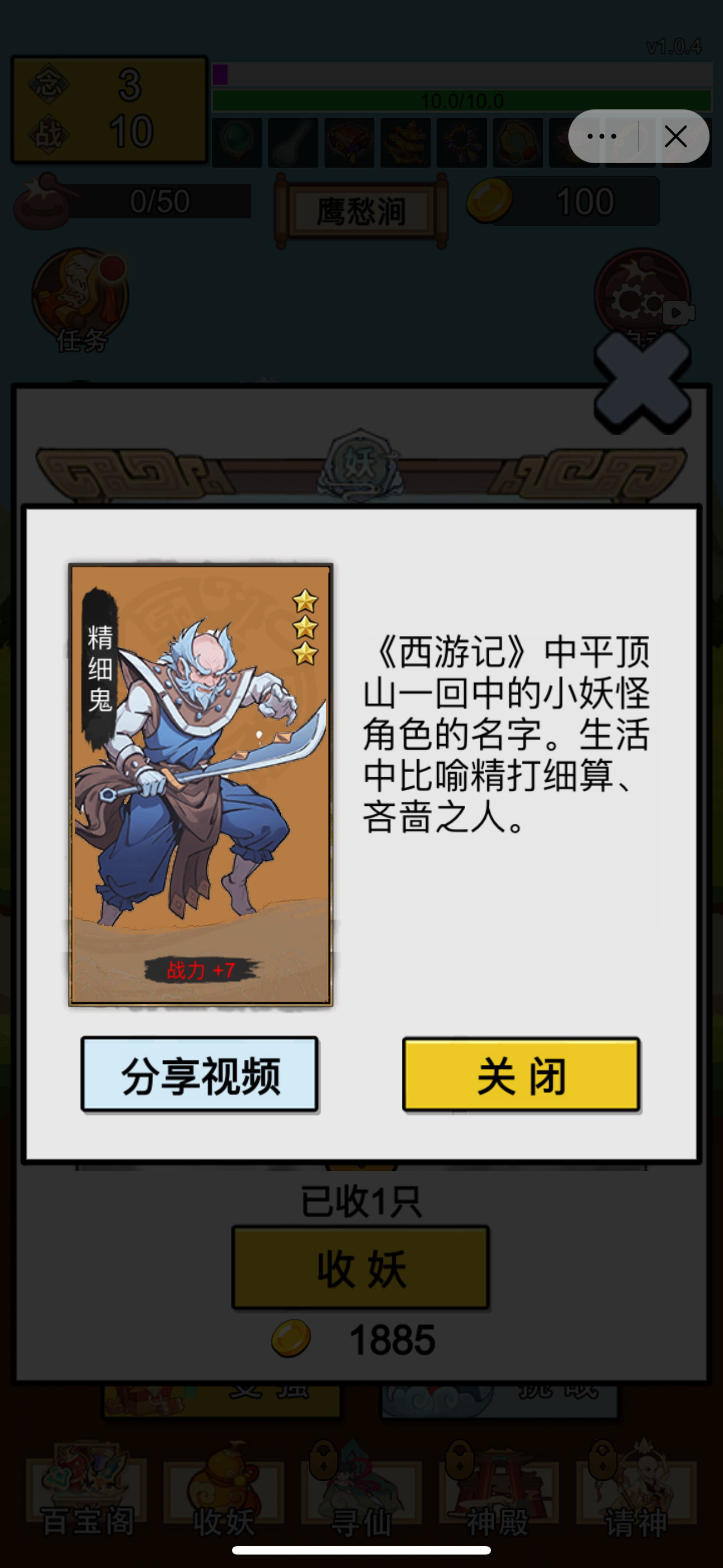 第3步:连续点击此妖的头像,会触发彩蛋,系统会送上此妖卡片一张。