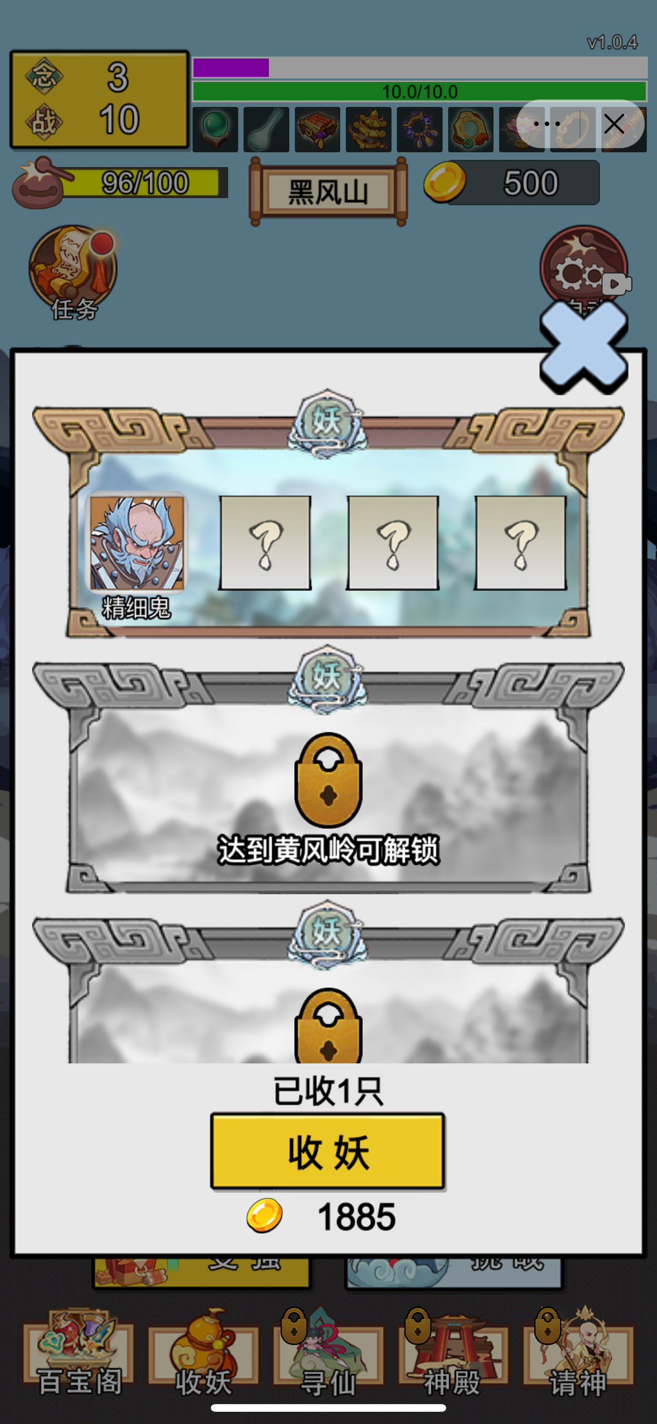 注:修为等级越高,获得金币越多,可以多升级下修为,再去触发彩蛋。