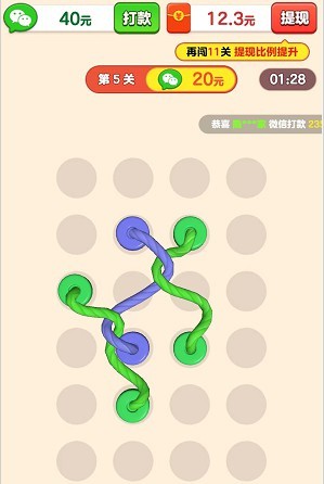 解绳我最强红包版是一款益智脑洞手机红包小游戏,在解绳我最强红包版内有着大量的关卡,随着关卡的进行,后续关卡的难度会越来越高,每完成一个关卡的挑战,就会累积一定数量的红包,如果满足要求,您可以按比例提取现金,在规定时间内完成解开所有绳索的挑战即可成功通关。