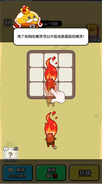 爆伤:火焰人相邻的精灵,暴击伤害+10%