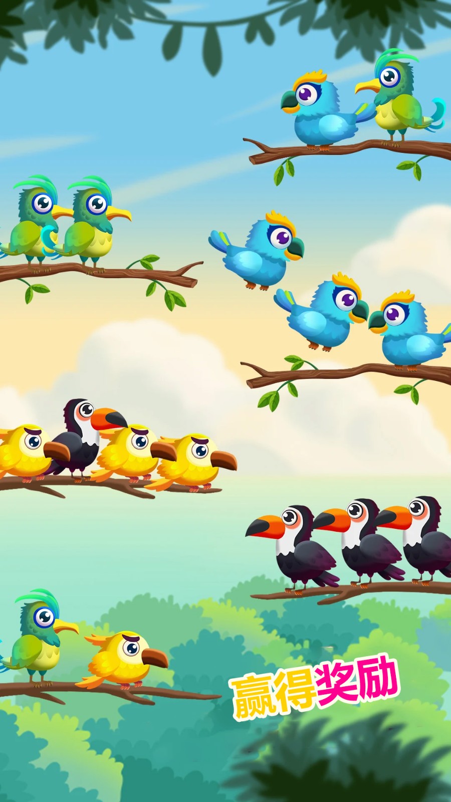 1.在树枝上对相同颜色的鸟进行分类,这不仅考验玩家的观察力,也锻炼了色彩辨识能力。