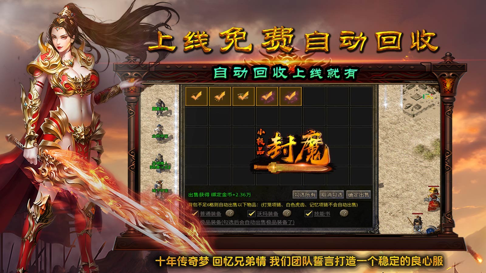 《封魔小极品》是一款结合了经典与创新的传奇游戏,它不仅让老玩家重温经典,也为新玩家提供了一个充满挑战和乐趣的游戏世界。加入《封魔小极品》,开启你的复古传奇之旅,体验不一样的小极品传奇!