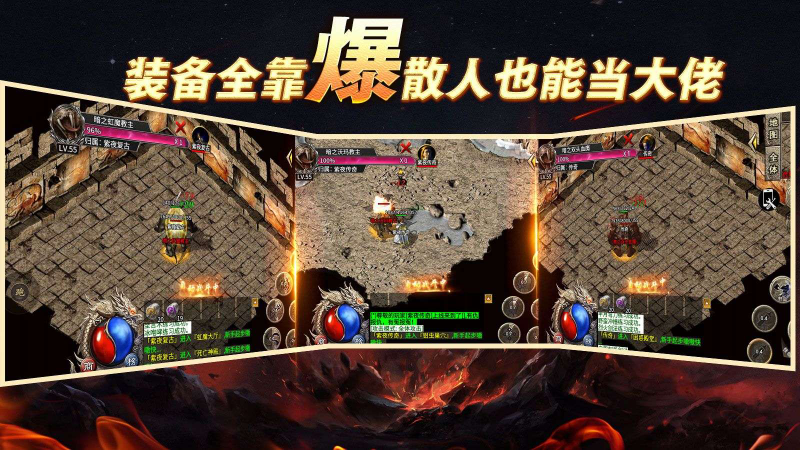 2.热血PK爆装行动,打宝和PK相结合,打怪的同时也可以爆装备、爆出极品,让你感受最纯正的传世经典。