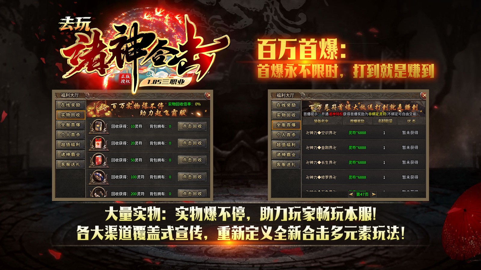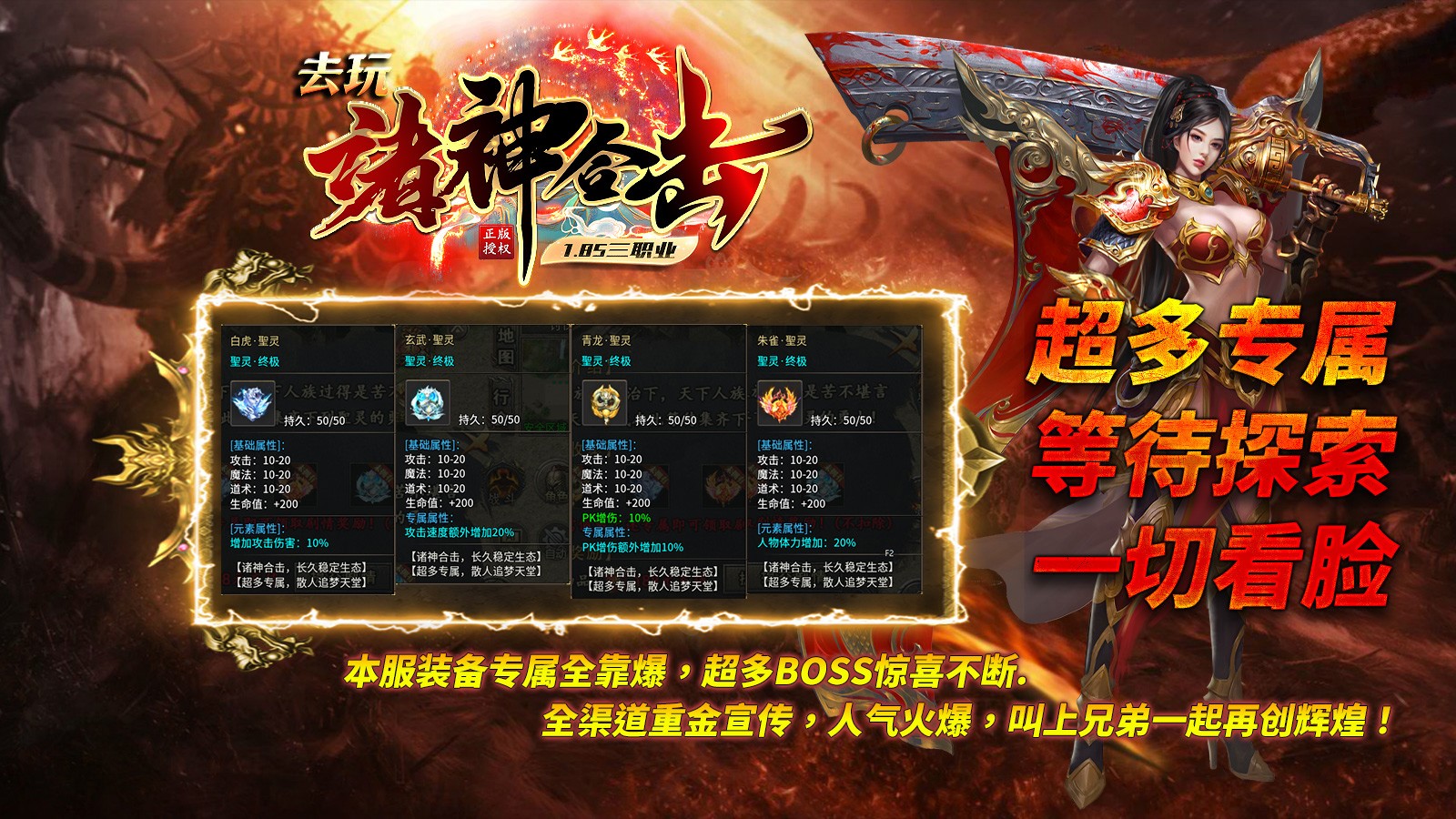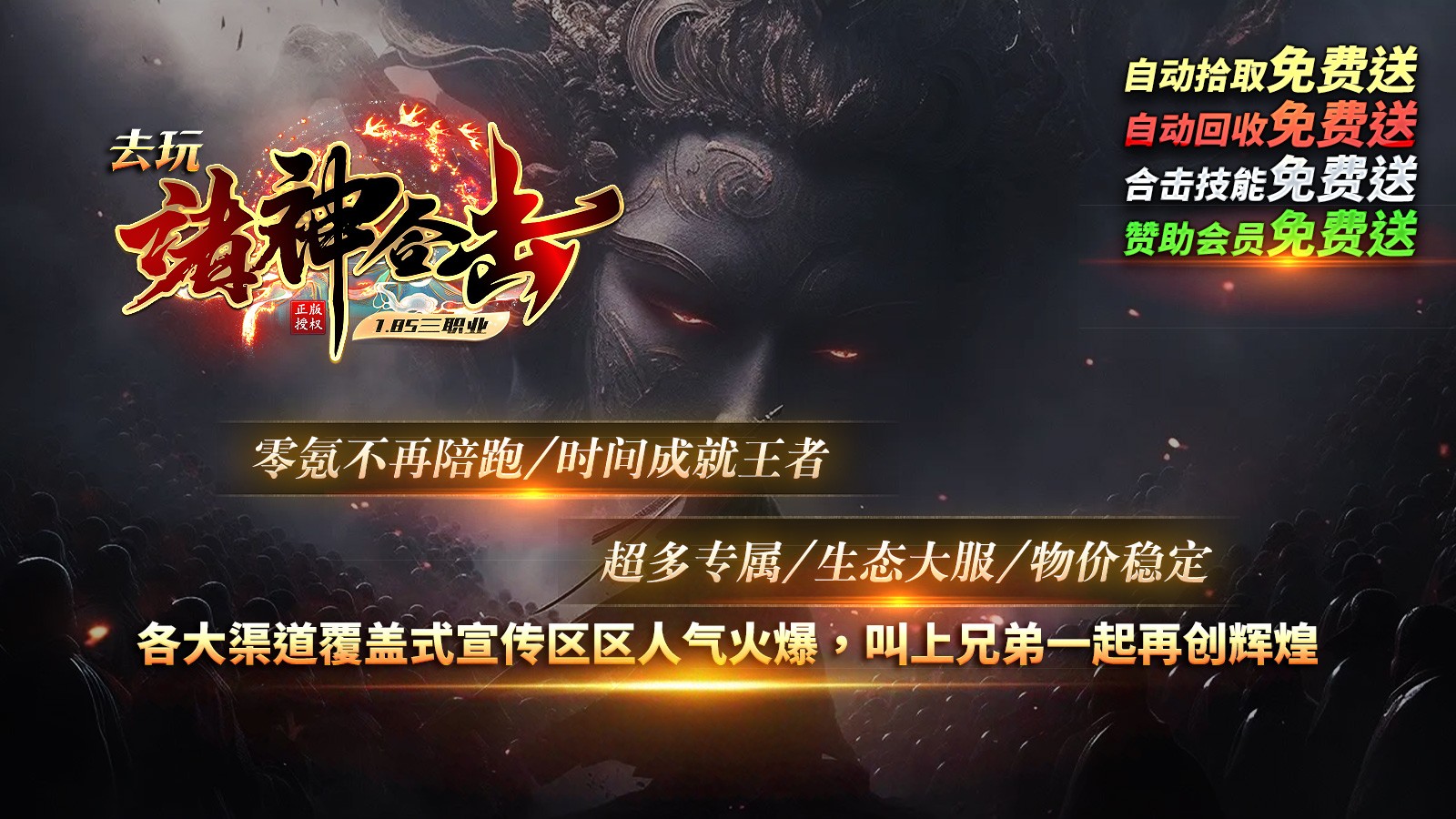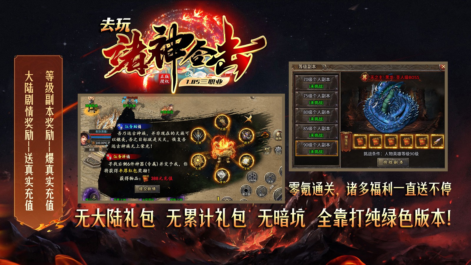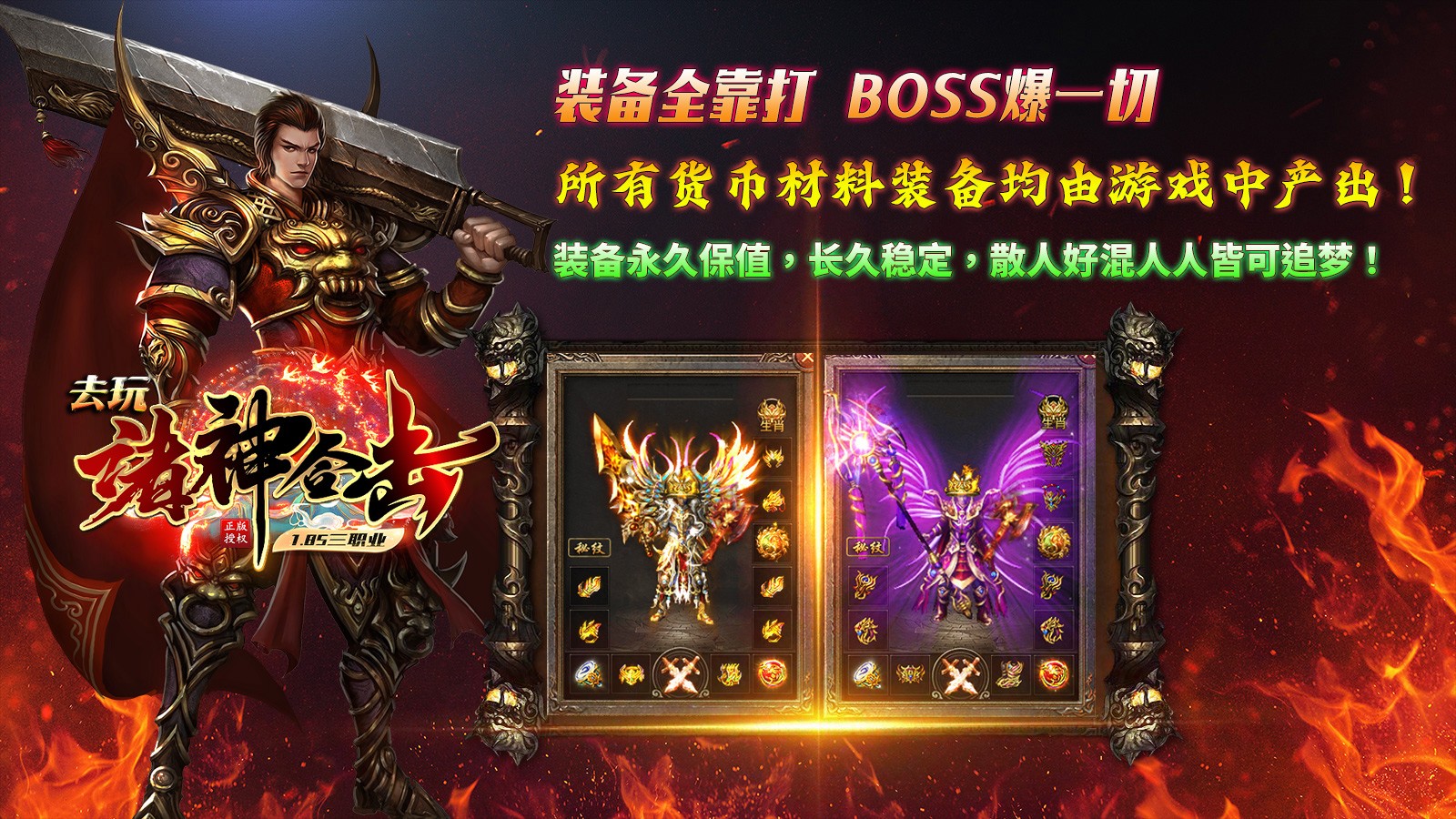 去玩诸神合击是一款1.85复古合击传奇手游,在去玩诸神合击中,主打生态大服,不卡地图,一切皆可打全靠打,无大陆礼包、无累计礼包、无暗坑全靠打纯绿色版本。