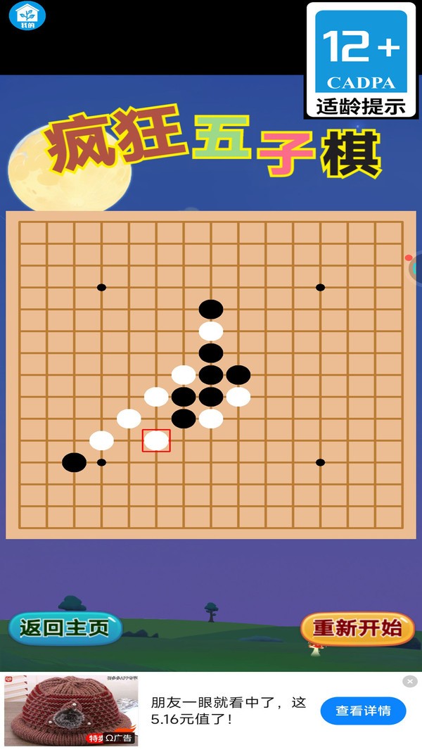 疯狂五子棋是一款精心设计的休闲益智游戏,疯狂五子棋将传统五子棋的策略精髓与现代游戏的互动乐趣完美结合,玩家将通过简单的规则,展开一场场智慧的较量,享受连珠成线的乐趣。