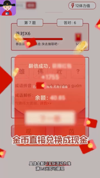 游戏中设置了各种奖励机制,玩家在闯关的同时,还能获得金币和红包等奖励,让你的学习之旅更加充满动力。立即下载《妙咪任学》,开启你的成语学习之旅,让智慧与乐趣同行!