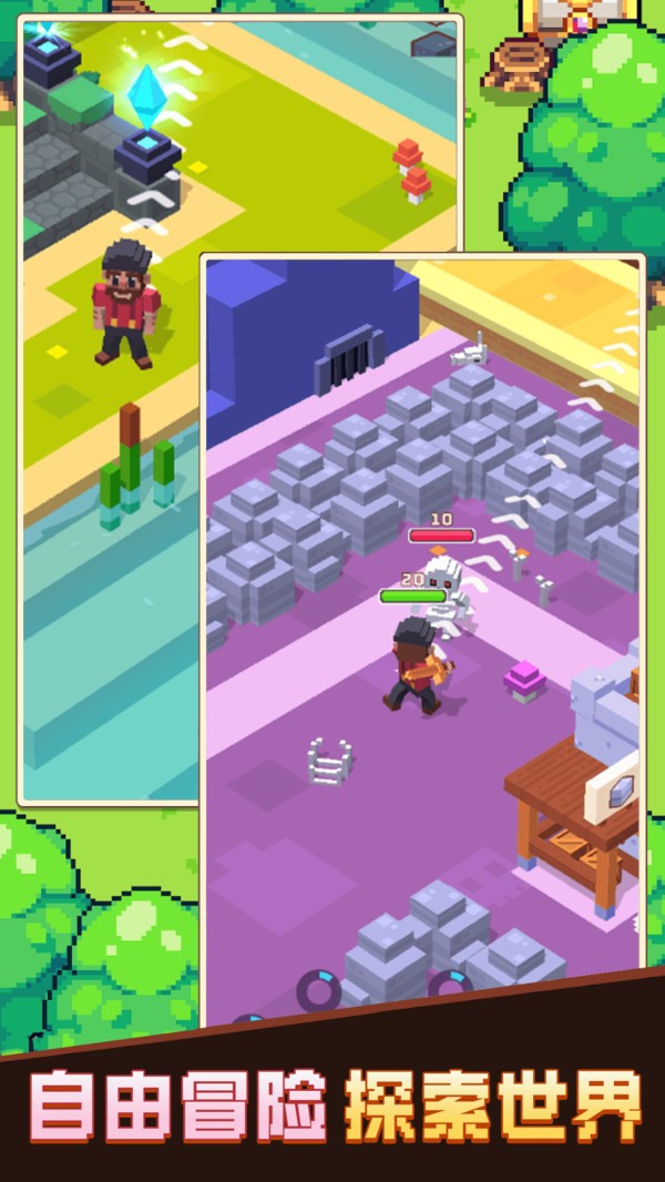 这是一款有趣又欢乐的像素风格冒险游戏,快来收集和使用各种资源,创造各种物品,在这个像素风格的世界中无限探索探索,保证各种资源都能轻松收集,建设各类土地资源,不断开发,即可获得相应的奖励,喜欢像素风格冒险游戏的玩家快来加入体验吧。