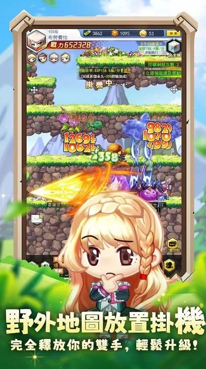 1.支持野外地图放置挂机,完全解放玩家双手,丰厚奖励可以获取,轻松升级