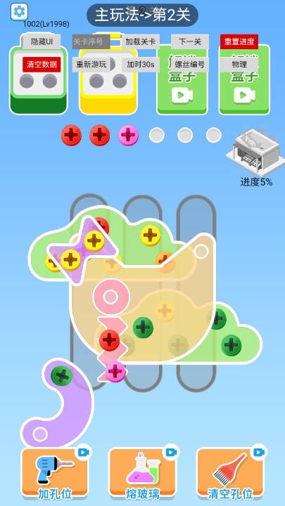 游戏的界面设计简洁明了,色彩鲜艳,操作方式也非常简单。玩家只需用手指轻轻点击屏幕上的螺丝,即可将其消除。