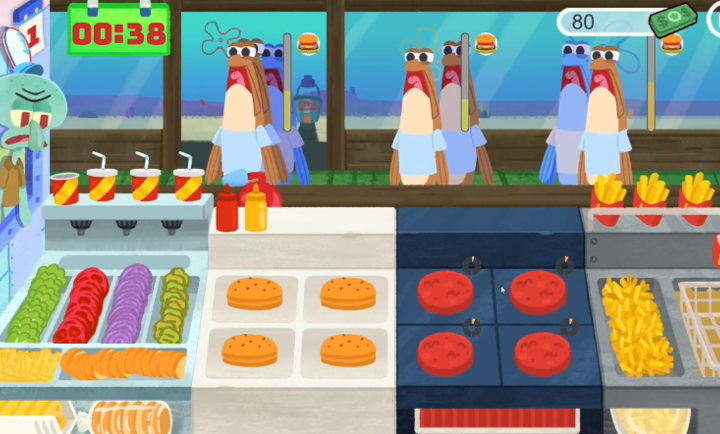 2.玩家需要根据顾客的订单,快速准确地制作蟹堡,满足顾客的需求。