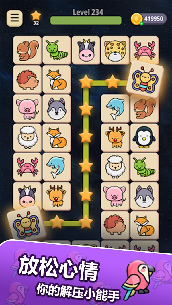 1.玩家只需将相同的两个图案通过不超过三个转弯的路径连接起来,即可消除这两个图案。