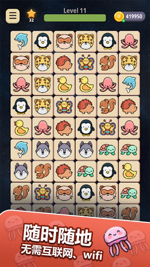 消除我最强是一款设计精美的连连看风格的消除小游戏,消除我最强不仅考验玩家的观察力和反应速度,还能在轻松愉快的游戏过程中锻炼大脑的思维敏捷性,用简单的连连看就是消除一天的疲倦,快来试试吧!