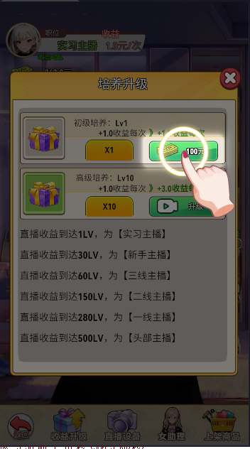 游戏设定你重生为一名普通女孩,并且意外变成妹子。通过不断努力和奋斗,逐步成长为顶级主播,开启全新的人生篇章。
