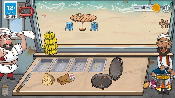 3.完成各种任务和挑战,掌握火候和时间,制作出完美的咖喱煎饼,及时为顾客提供服务,获取好评。