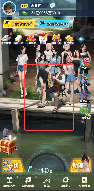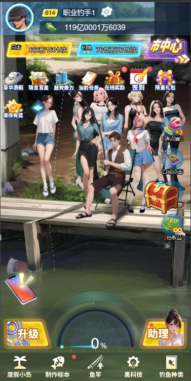 2、可以升级助理提升自己的钓鱼赚钱能力