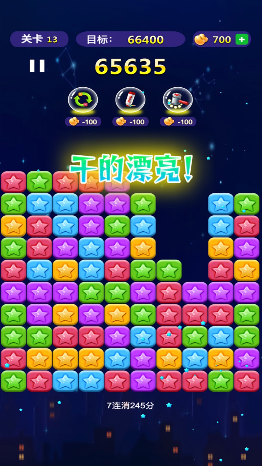 消了个消星星是一款经典消消乐游戏,在消了个消星星中,玩家需智慧匹配并消除相同颜色的星星,享受色彩斑斓的视觉盛宴,游戏界面简洁而不失精致,核心玩法简单易懂,玩家只需通过滑动手指,它们便会华丽地消失