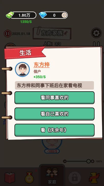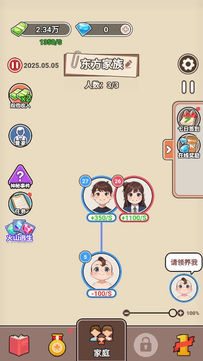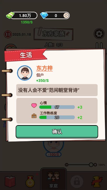 游戏中有丰富的任务和活动,如工作、上学、社交和休闲娱乐,完成任务可以获得奖励,提升家庭的整体幸福感和经济状况。