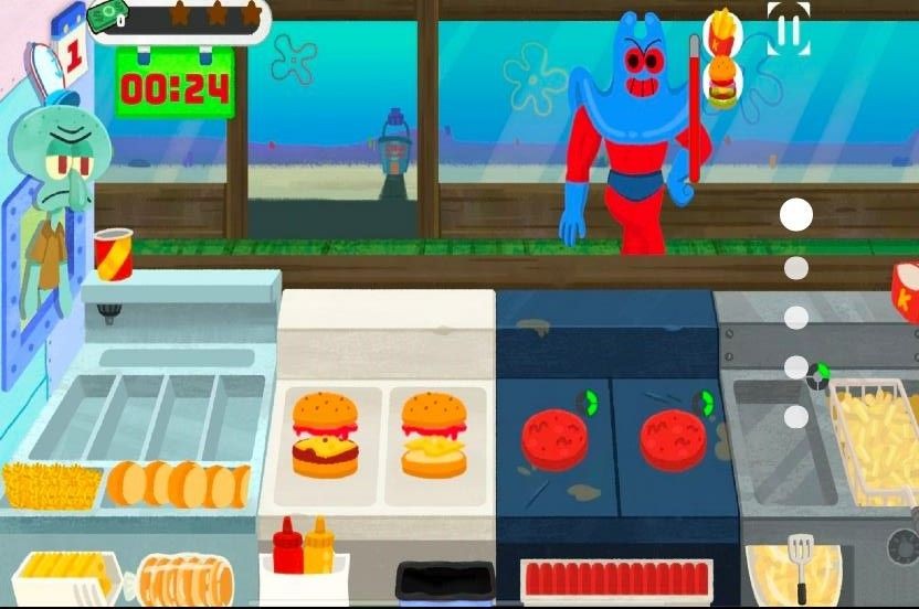 1.用蟹黄堡的秘方来制作美味蟹堡,在规定的时间内尽可能多的完成顾客们的订单