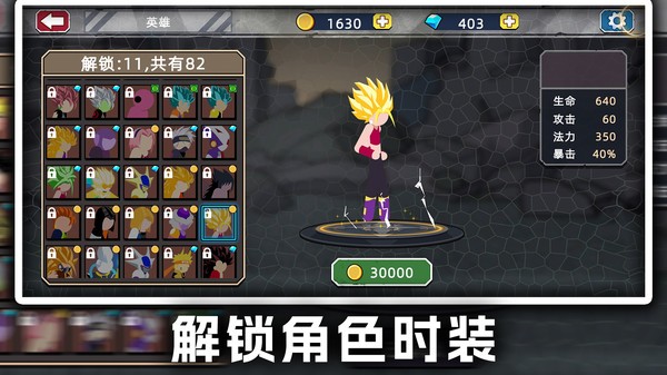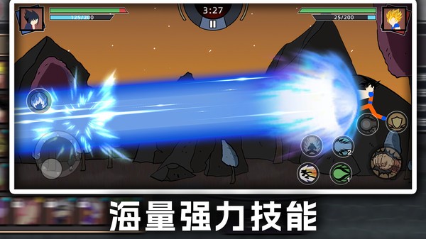 2.游戏融合火影、死神、龙珠等多种热血动漫元素,打造了82位火柴人英雄可供玩家选择