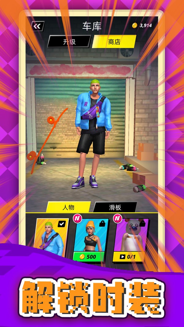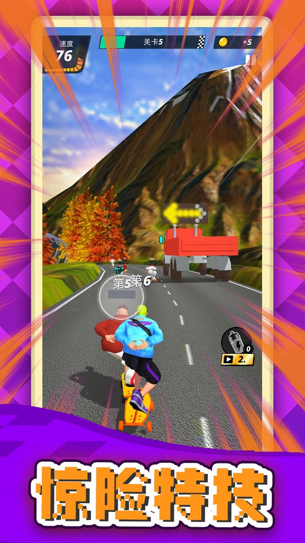 4.滑板升级:使用您收集的金币来调整和提升您的滑板,使其加速更快,操控更好,让您在竞争中保持优势