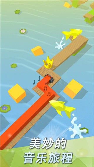 第二个河面区域就来了,这就意味着坑要来啦,要注意啦!这个河面区域的浮块会在音乐响起时才会浮现出来,而且在浮现出来的时候操控的线基本上已经快经过了,所以这里要集中注意力,还是建议大家所玩几次