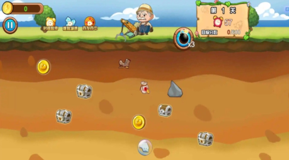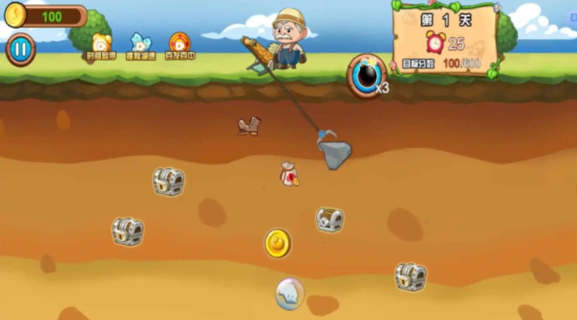1.你需要操控矿工,利用钩子抓取地下的黄金、宝石和各种稀有矿物