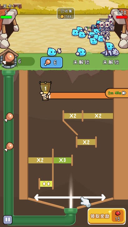 3、球球通过管道可以获得更多的食物来召唤史莱姆战士