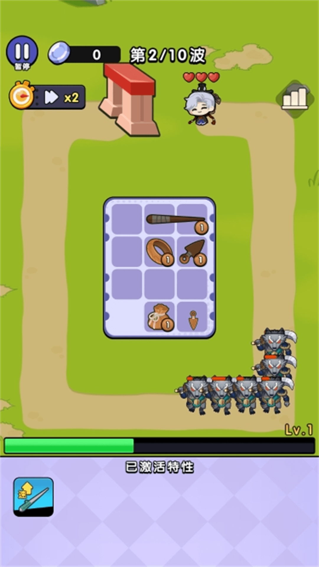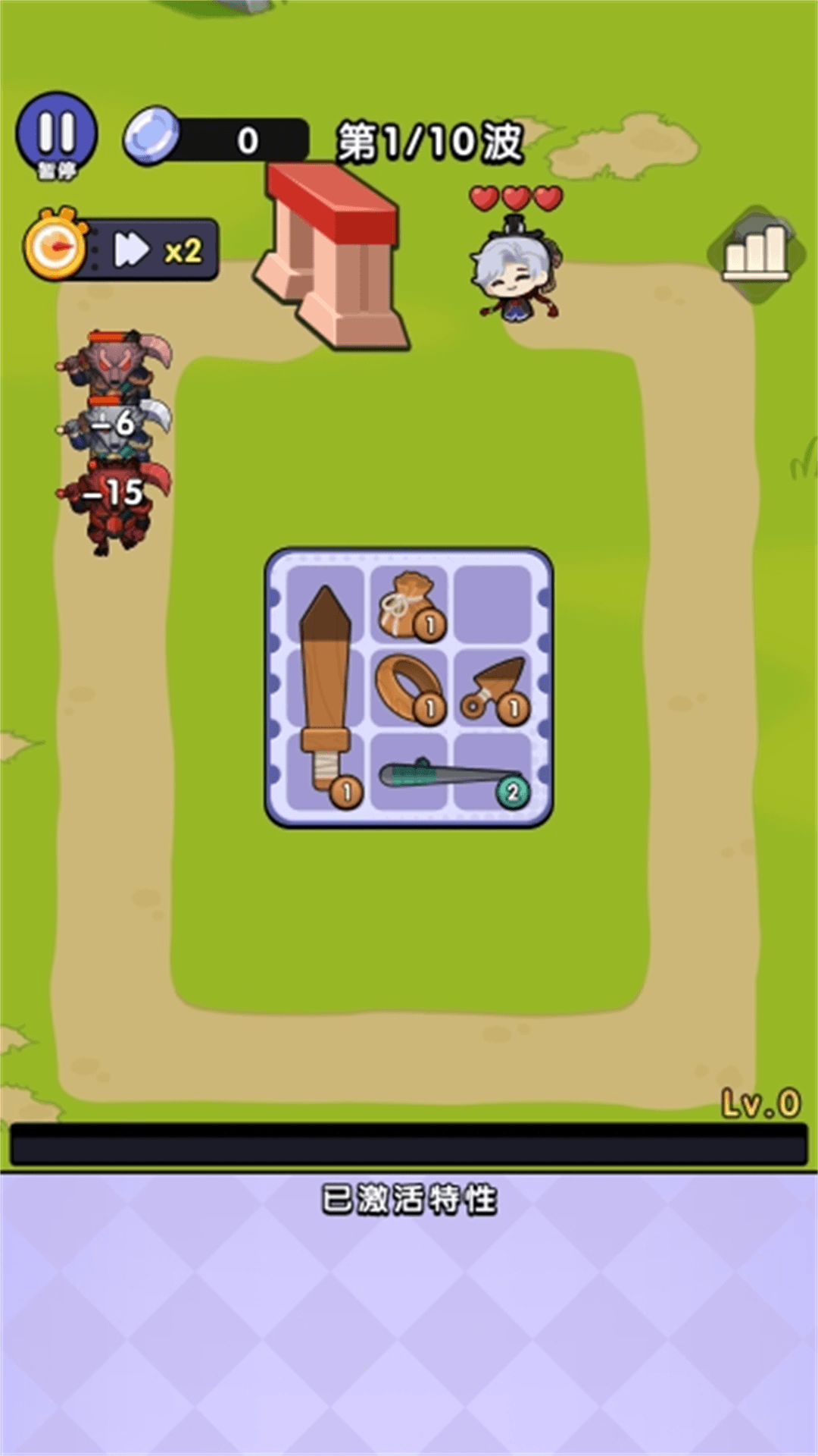 1.通过不断的合成,升级更强大的装备,获得更强力的技能,将所有的敌人尽数消灭