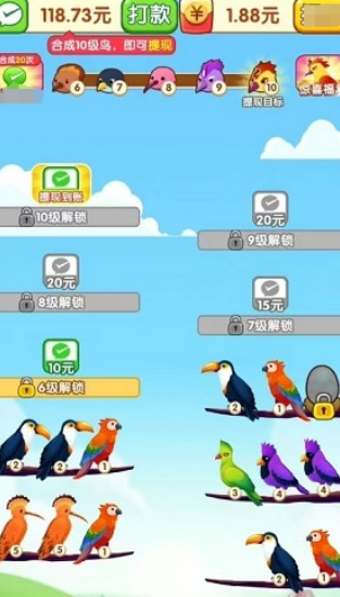 鸟了个鸟是一款消除闯关领红包游戏,在鸟了个鸟中,拖动相同的小鸟进行消除,完成关卡中的目标分数,即可获得丰厚的红包奖励,让你轻松赚零花,享受无尽的欢乐。