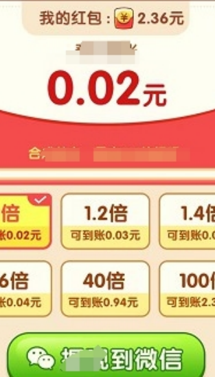 2.玩几关可以拿3个小红包,大概有0.5左右。他们家的红包奖励是按万分比提的。