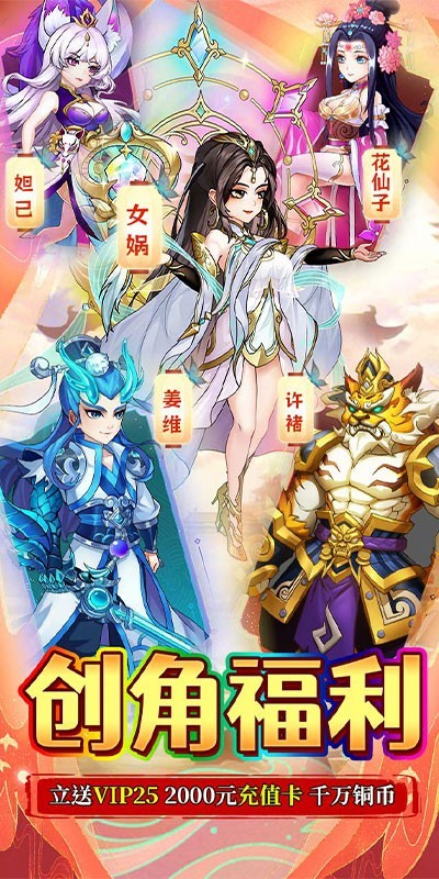 1、创角福利:立送VIP25、2000元充值卡、千万铜币