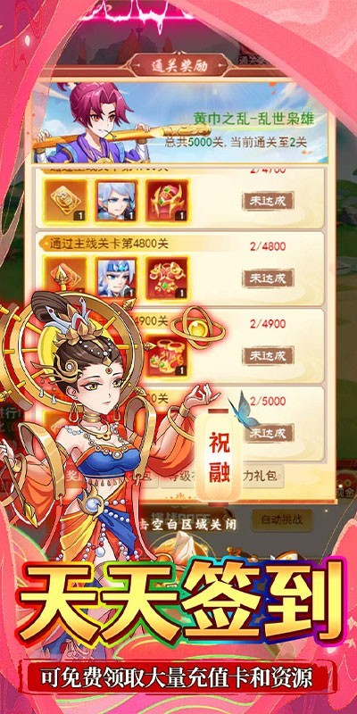 除此之外,挂机扫荡、七天登录、主线通关都可以获取大量真充元宝,买基金和战令,是性价比最高的获取真充卡途径。