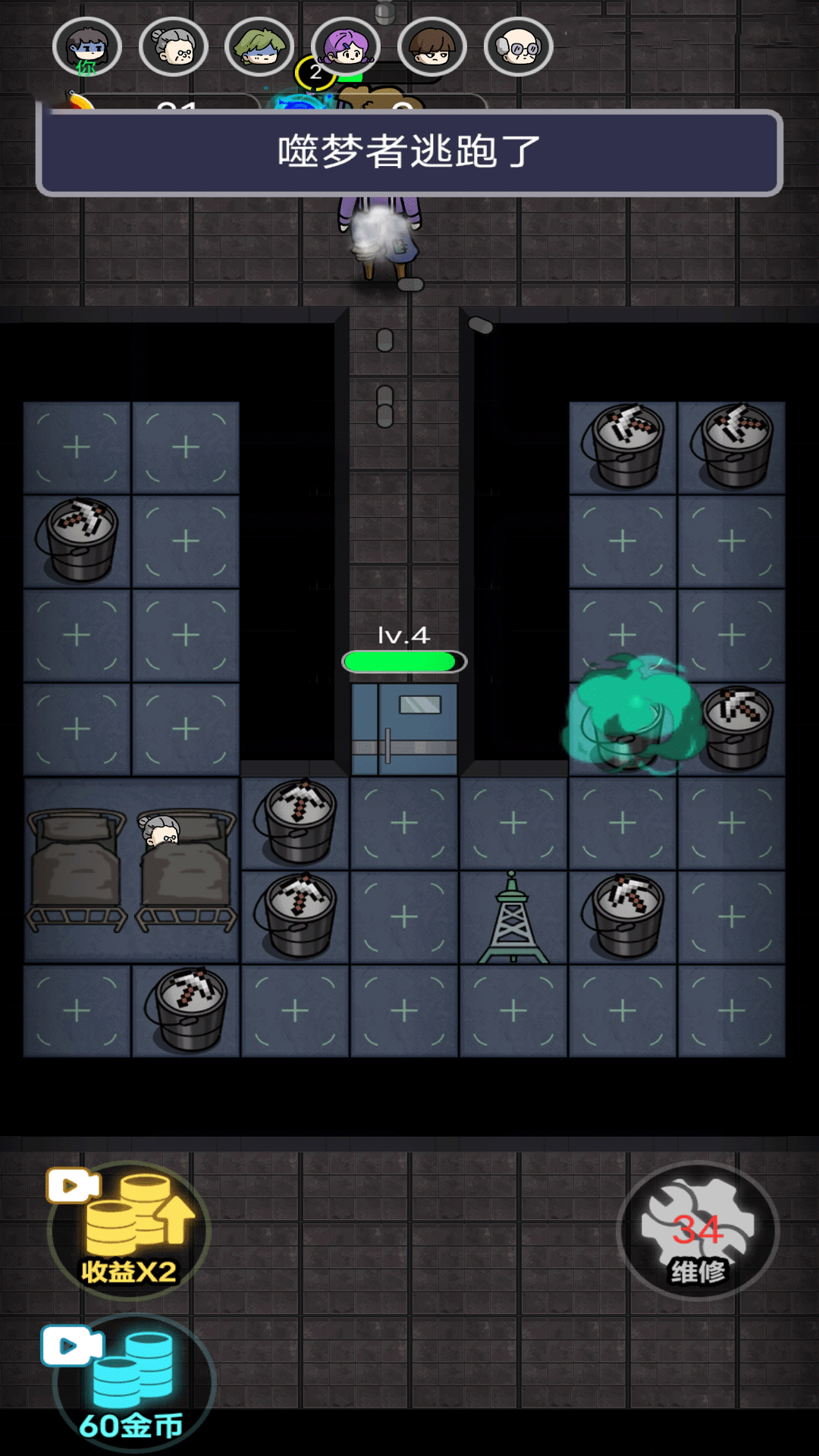 2.玩家需要合理分配有限的资源,如金币、电力等,来升级床铺、购买防御设施,解锁更强大的技能和道具
