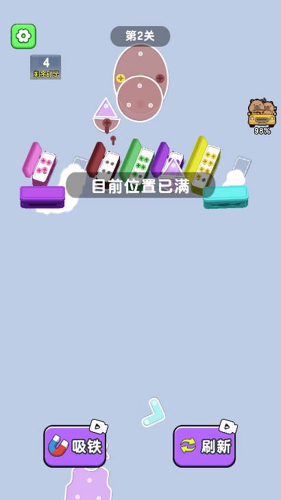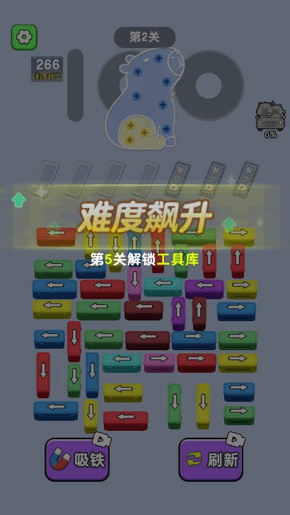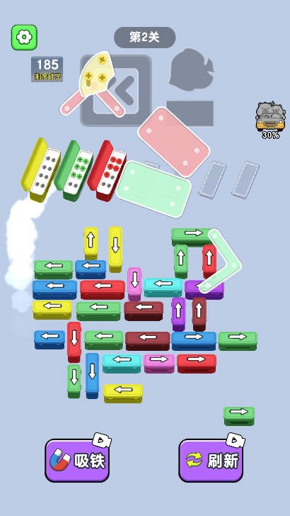 1.顺着箭头点击挪出盒子,收集上方对应颜色的彩色螺丝。